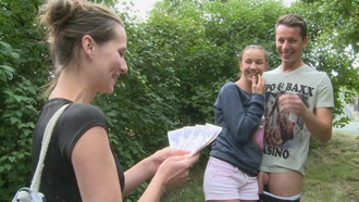 Šoustání ve čtyřech na veřejnosti! Za prachy! To je česká národní specialita. České páry vědí, jak si zpestřit sexuální život a výrazně vylepšit rodinný rozpočet. Moje překrásná a věčně nadržená žena to s nimi umí. Tentokrát vybrala páreček sotva plnoletých studentíků. Ona je úžasně hezké nezkušené trdlo. Oba byli červení až za ušima. Dáme to pěkně krok za krokem. Nejdříve provětráme kozy. Pak dáme seznamovací kuřbu. Holky, střídáme! Na nesmělého borce nastoupila zkušená ústa mojí holky. Dvojitý sání. To je tah! Něco takovýho jsi ještě nezažil, frajere, co? Tisícovky z našich kapes mizí jedna za druhou. Paralelní kuřba. Paralelní jízda na čurácích. Holky by s tímhle číslem mohly vystupovat ve varieté. Duo prcalos! Neuvěřitelná mrdací show před zraky počestných spoluobčanů!